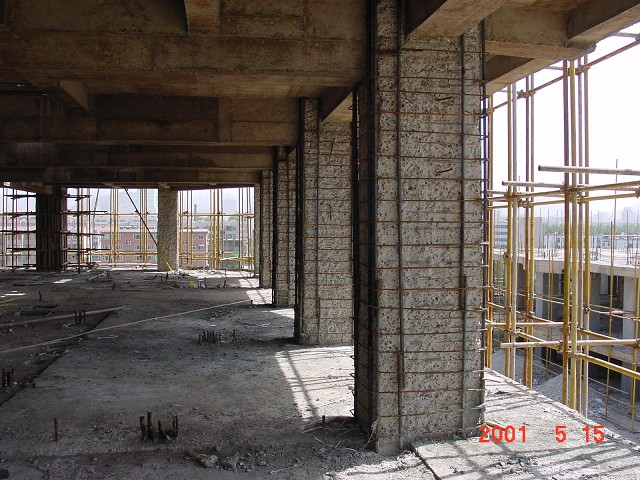 濟(jì)南嘉恒商務(wù)大廈建于1995年,中間因故停工,1999年繼續(xù)建設(shè),我單位對(duì)其主體結(jié)構(gòu)進(jìn)行了鑒定加固,采用化學(xué)植筋,加大截面加固框架柱進(jìn)行處理。