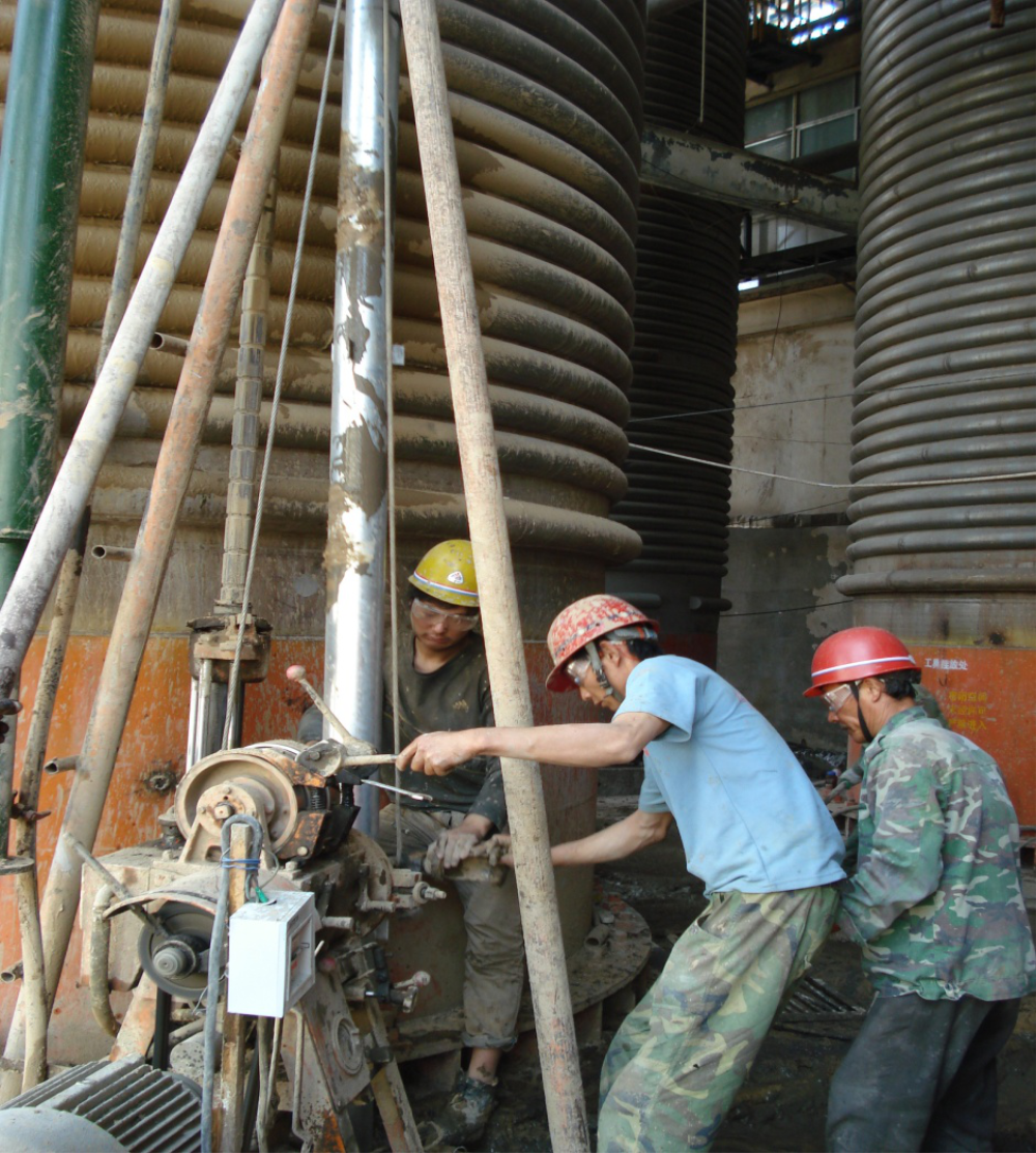 五蓮斯比凱可(山東)生物制品有限公司發(fā)酵車間10個罐體在生產過程中產生的動荷載較大,引起罐體發(fā)生較大搖動,嚴重影響了生產的進行。為保證罐體的正常運行,由山東建筑大學工程鑒定加固研究所對其進行加固設計,采用微型樁加固罐體基礎。每個罐體基礎用10棵微型樁進行補強,新微型樁樁頂用冠梁與原來承臺相連接,增加其整體性。本次加固工程布置的微型樁共計100棵,整個工程由山東建固特種專業(yè)工程有限公司施工。加固后罐體在重新投入生產運營后,幾乎未發(fā)生由于基礎振動引起的變形,說明了我單位設計的安全合理性和施工的高質量。