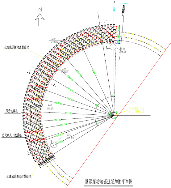 華能白楊河電廠2×300MW級以大代小供熱機組圓形煤場局部存在新近回填土體,對該場地進行注漿加固處理。采用沖擊成孔,成孔過程中可以通過振動擠壓使周圍土體密實同時防止塌孔,另外還可以避免由于泥漿護壁成孔造成的土體含水量增大從而影響注漿效果及泥漿滲透。經(jīng)過注漿加固處理后的地基滿足變形模量不小于18MPa。