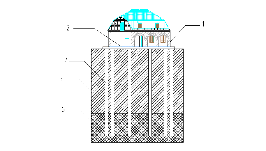 濟(jì)南皮膚病醫(yī)院位于濟(jì)南市中山公園東老商埠一期地塊內(nèi),歷時(shí)百年,為仿德式歷史風(fēng)貌建筑。該建筑物為單層帶局部地下室的砌體結(jié)構(gòu),建筑面積約165.08平方米,其南立面見圖8。山東融匯建設(shè)開發(fā)有限公司在對該地塊開發(fā)的同時(shí),本著保護(hù)文物傳承文化的目的,擬對該建筑原址保護(hù),并在其下方增設(shè)三層地下停車場。