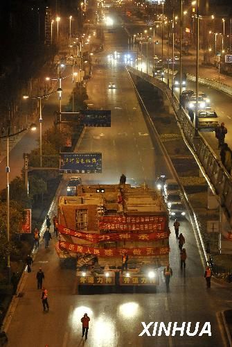 3月2日,拖車載著老別墅駛離原址。
