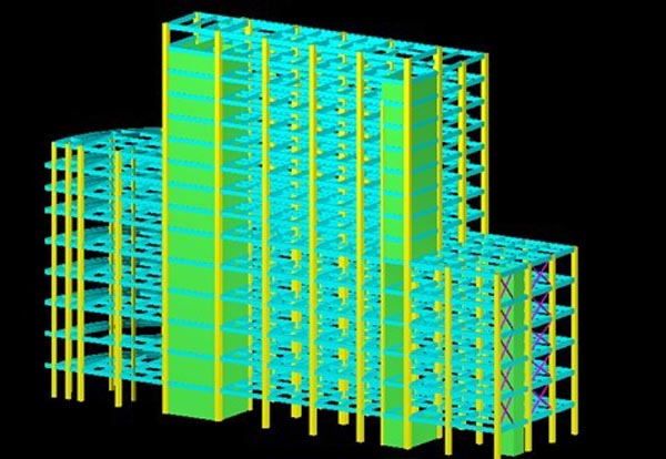 邢臺銀座商城,由于商場布局改變,要求拆除9軸線上J~K間250mm厚混凝土墻(1~5層),J軸線上8~9間250mm厚混凝土墻(1~5層)。拆除該位置墻體造成結(jié)構(gòu)整體剛度不均勻,扭轉(zhuǎn)效應(yīng)增大。為了不影響商場的使用功能,選擇在其他部位增加耗能鋼支撐的方法解決剛度中心的偏移。