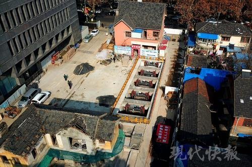 這兩棟建筑分別是北京西路 57 號和天目路 32 號。2015 年 10 月 7 日,為建南京市天目大廈地下停車庫工程,施工方開始進(jìn)場施工。上海建工二建集團(tuán)負(fù)責(zé)此次項目的工程師尚鋒告訴記者,建設(shè)這處地下車庫時,可利用的空間很小,為了最大可能地保護(hù)這兩棟歷史建筑的風(fēng)貌并減少揚(yáng)塵等污染,他們采取地上地下同時施工的方式。
