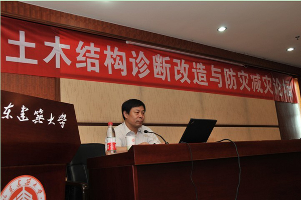 此外,各位專家還為山東建筑大學(xué)師生做了反映土木工程領(lǐng)域前沿進(jìn)展的“土木結(jié)構(gòu)診斷改造與防災(zāi)減災(zāi)論壇”系列學(xué)術(shù)報(bào)告:清華大學(xué)葉列平教授《結(jié)構(gòu)系統(tǒng)概念與RC框架結(jié)構(gòu)重要性評(píng)價(jià)及抗震設(shè)計(jì)》、同濟(jì)大學(xué)呂西林教授《超高層建筑抗震研究進(jìn)展》,天津大學(xué)李忠獻(xiàn)教授《大型及重要建筑抗爆安全性關(guān)鍵技術(shù)研究與工程應(yīng)用》、北京工業(yè)大學(xué)張毅剛教授《火車站房建設(shè)與大跨度結(jié)構(gòu)面臨的挑戰(zhàn)》,受到師生的熱烈歡迎。